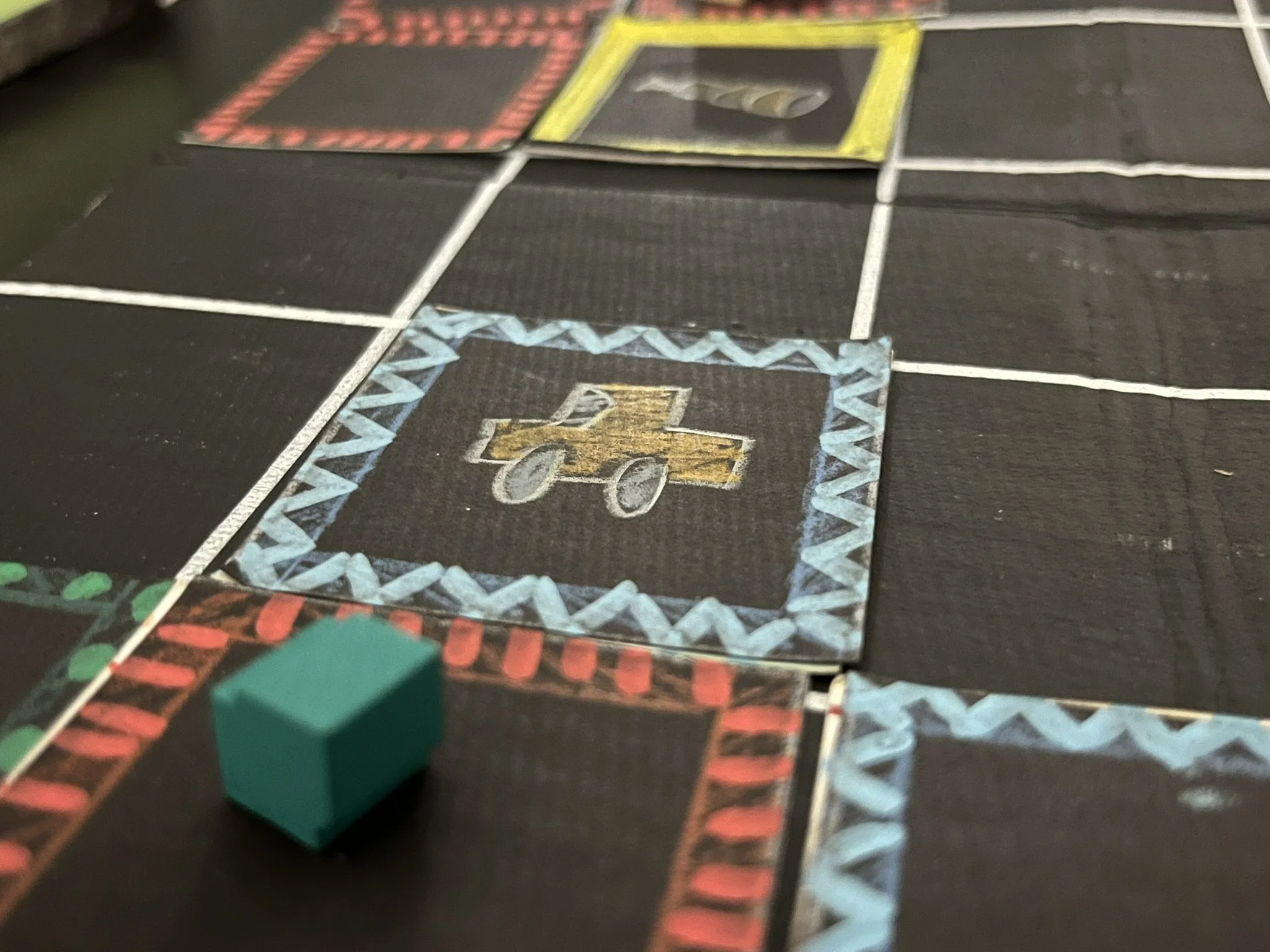 A cooperative tile-laying game where players work together to complete a set of chalk drawing patterns before the end of recess.